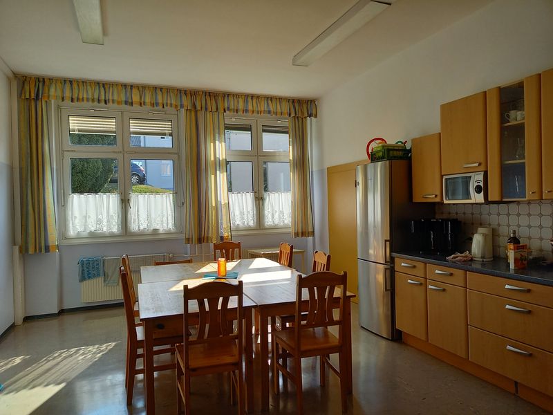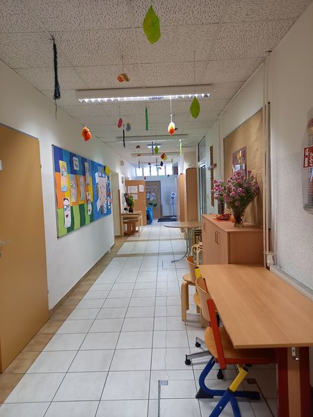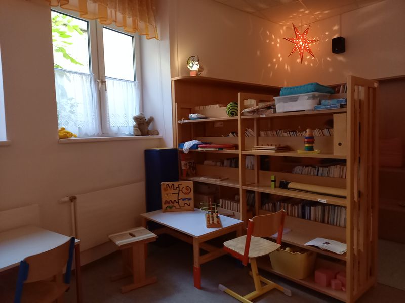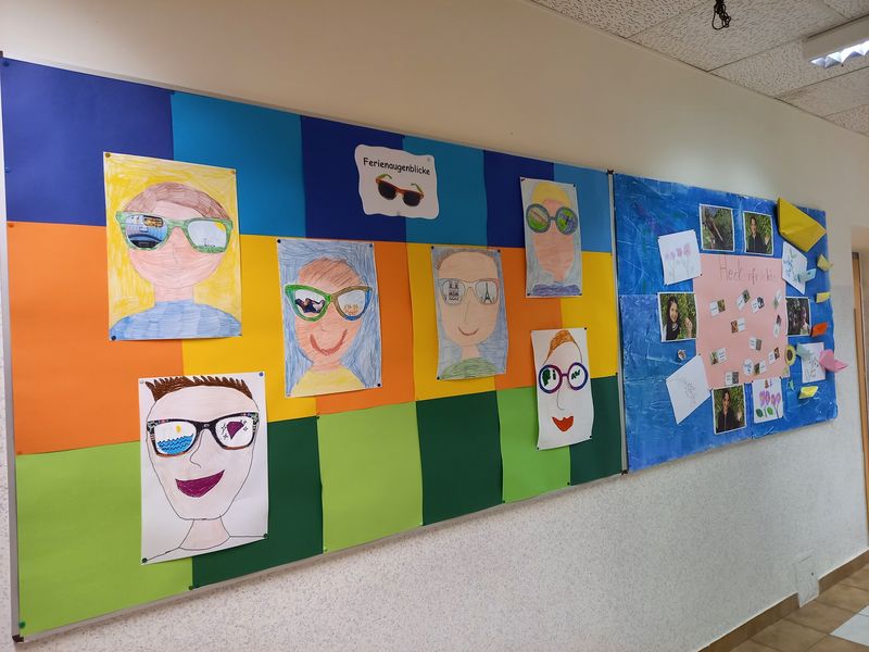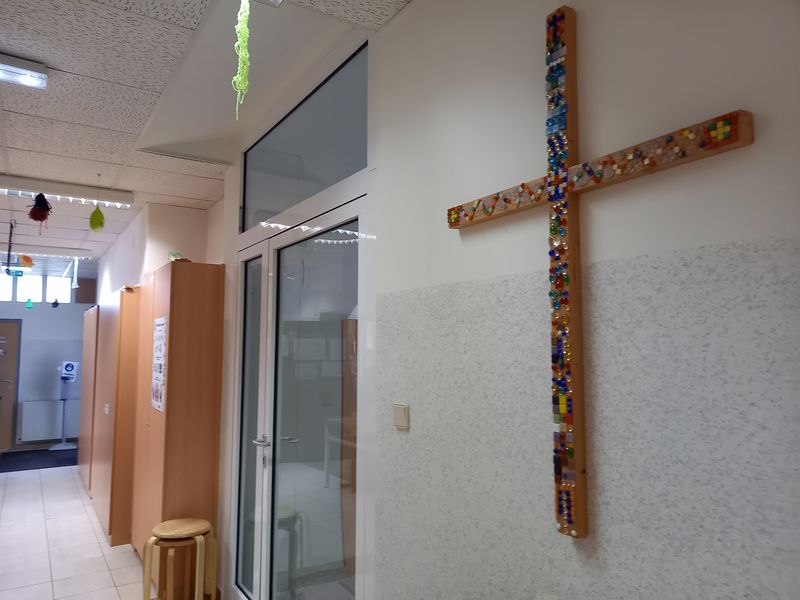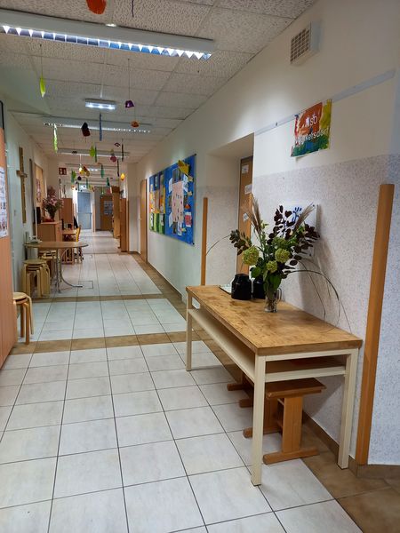 Eindrücke aus unserem Schulhaus. Der Eingangsbereich: Die Wände werden passend zur Jahreszeit mit den Schülerinnen und Schülern gestaltet. Der Snoezelenraum mit Bücherecke: Die Schulküche: Die Direktion: